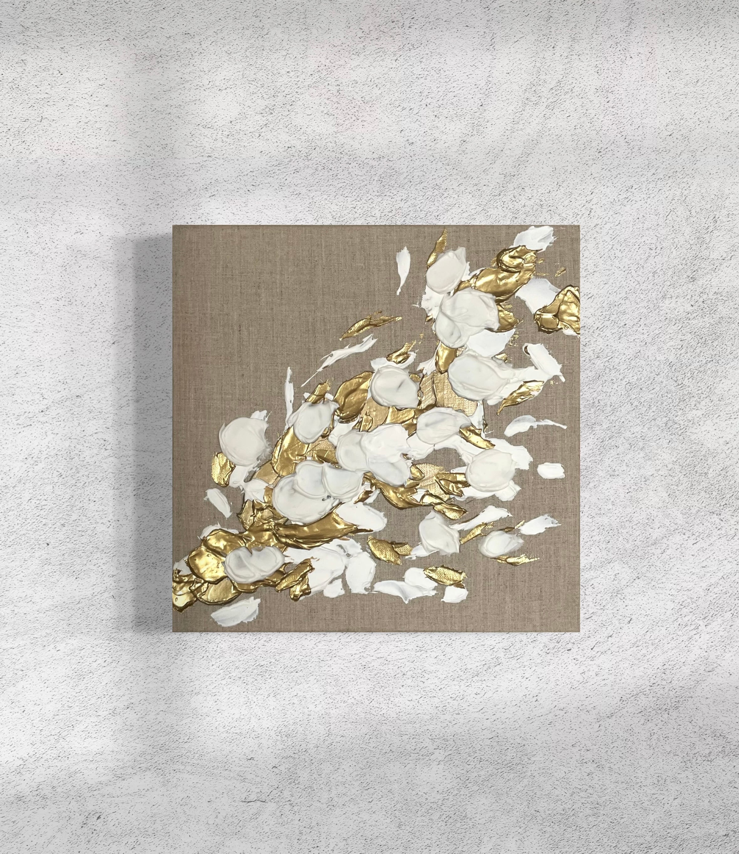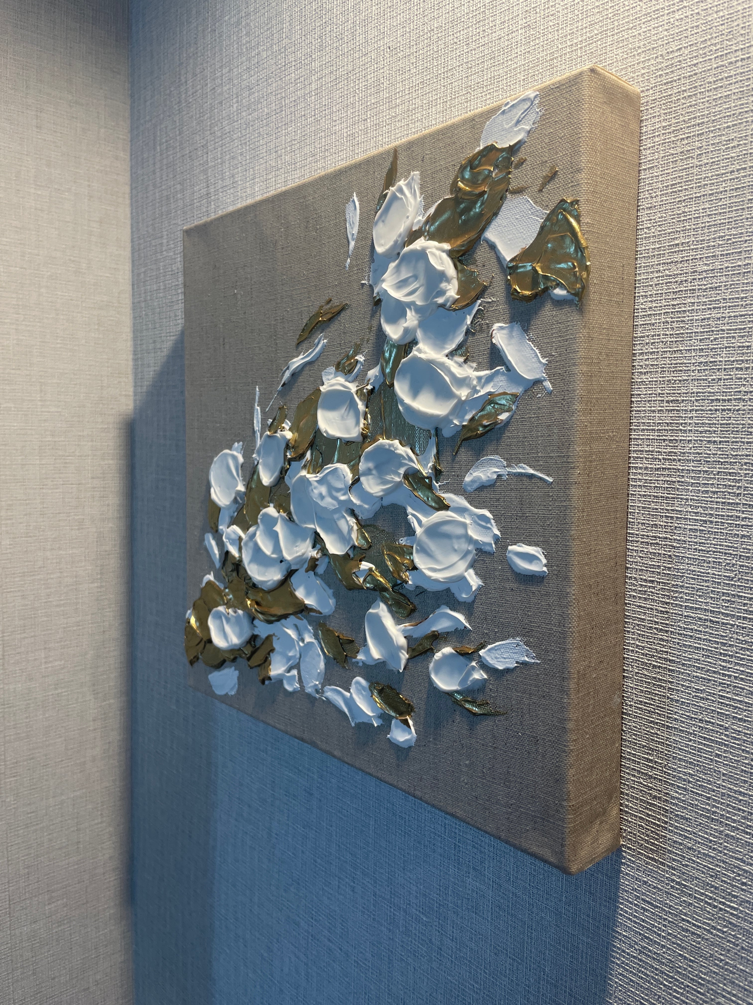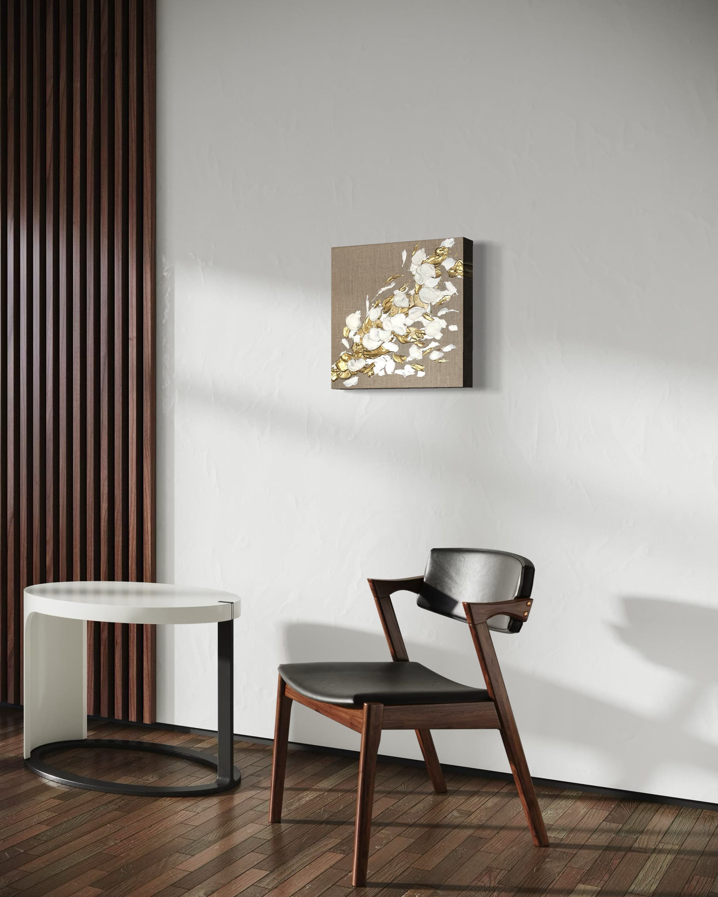 壁面に立体的なアートの存在感が生まれます。リネン特有のナチュラルな質感と、