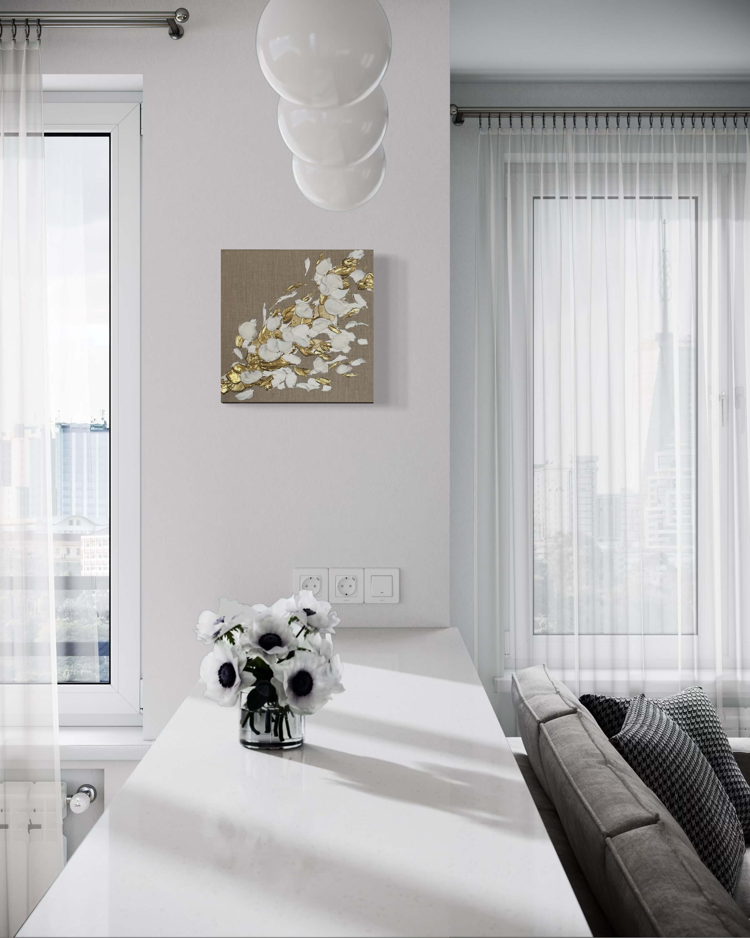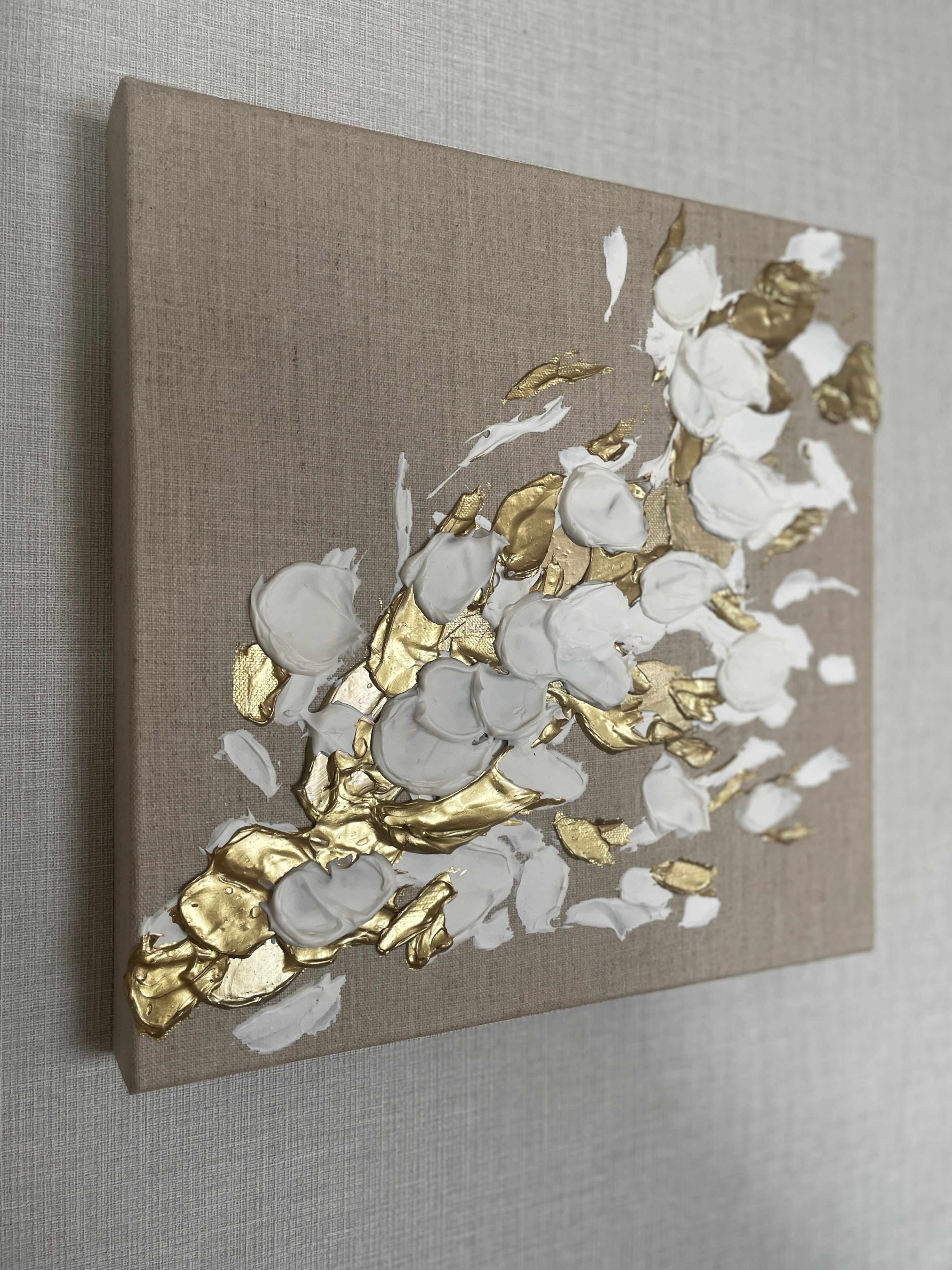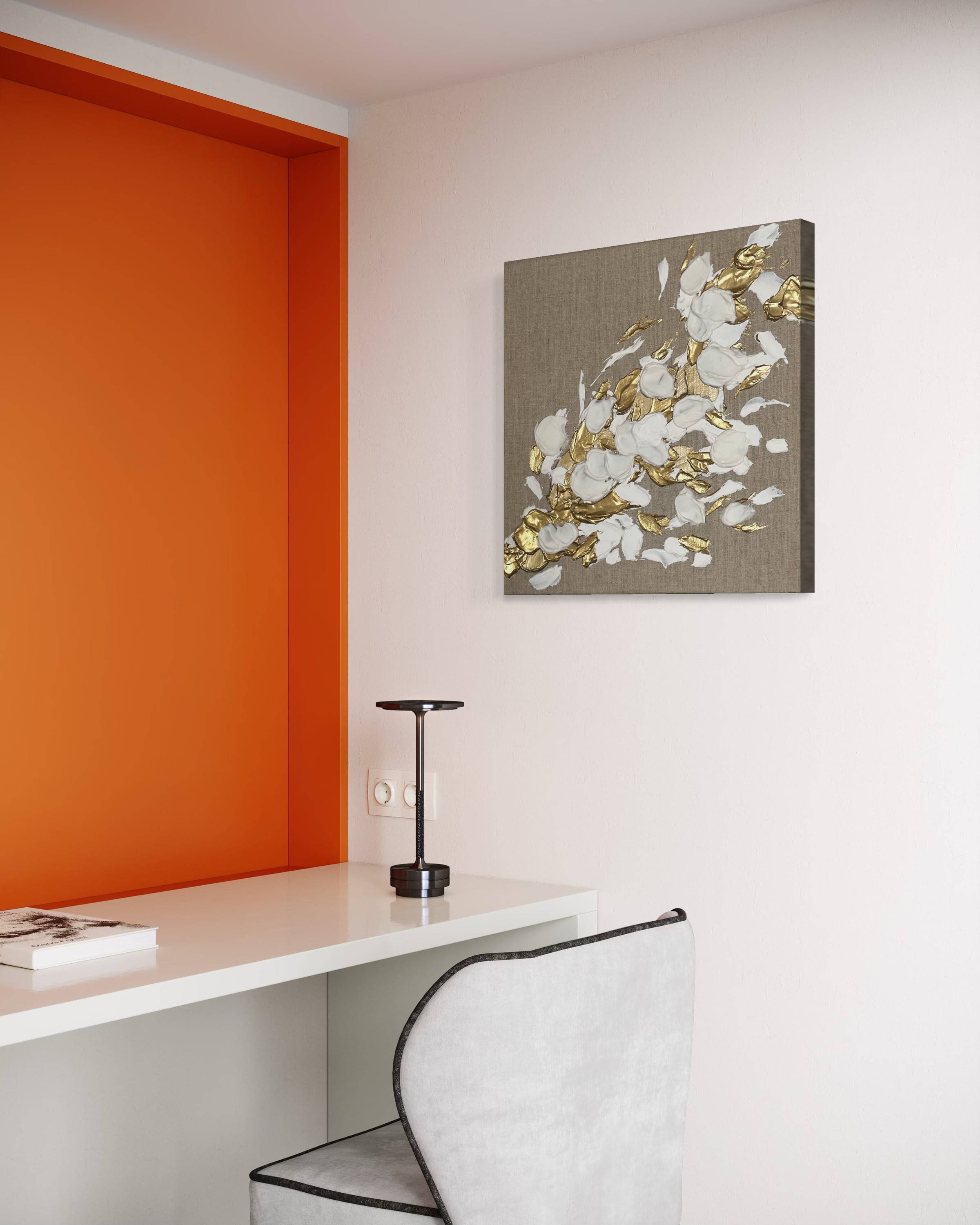 壁面に立体的なアートの存在感が生まれます。リネン特有のナチュラルな質感と、